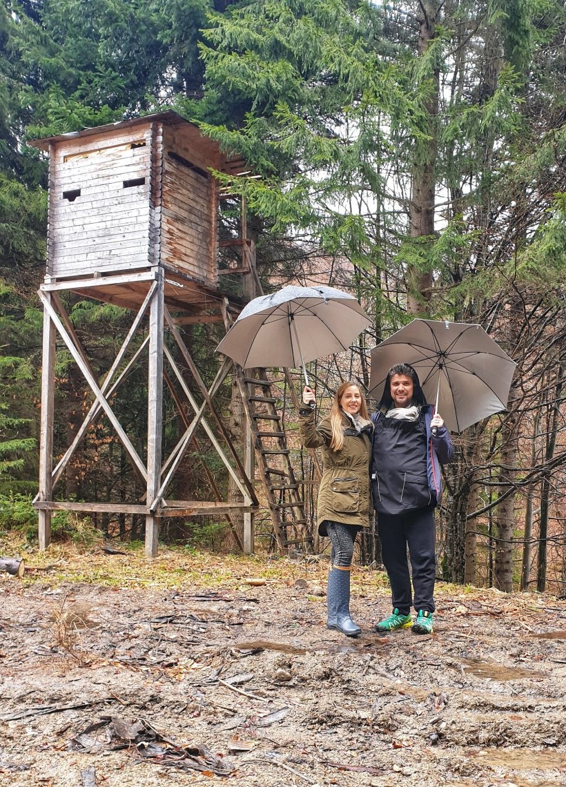 Pentru că în continuare nu putem sta locului, atât cât ne-a permis vremea ne-am plimbat în jurul cabanei şi am petrecut cât mai mult timp la aer curat. Sâmbătă am fost chiar într-o mică drumeție cu ghidul Sebastian până la un observator de urşi, doar noi trei. Noi eram echipați cât de cât, dar restul din cabană nu au vrut să îsi ude tenişii. 😂
