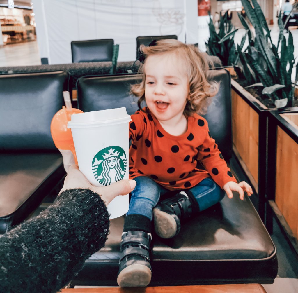 Astăzi am fost cu Crina (1 an și 8 luni) în mall. Am profitat de ocazie să intru în 2-3 magazine înainte să iau masa cu verișoara mea. Magazinele au fost de jucării pentru că am căutat ceva să mă ajute în viitoarele călătorii cu avionul, iar la masă am reușit chiar să avem o conversație decentă, ca să nu mai spun că am apucat să beau și o cafea într-o oarecare liniște.